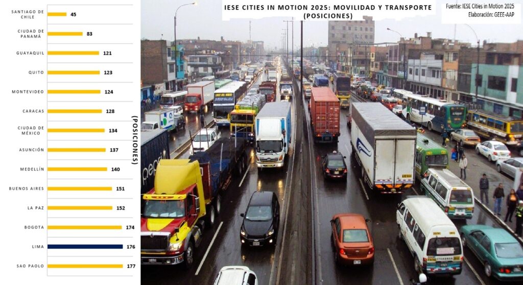 Agencia Peruana de Noticias PRENSAPERU.PE https://www.prensaperu.pe Twitter: @prensaperupe La ciudad de Lima enfrenta un panorama contrastante en el último informe del Índice Cities in Motion 2025, elaborado por el IESE Business School y difundido por la Asociación Automotriz del Perú (AAP). Mientras que la capital registra avances en áreas como la movilidad sostenible y el turismo, su desempeño en movilidad y transporte se ha deteriorado de manera alarmante, ubicándola entre las peores del mundo y provocando una caída en el ranking global de ciudades dinámicas.