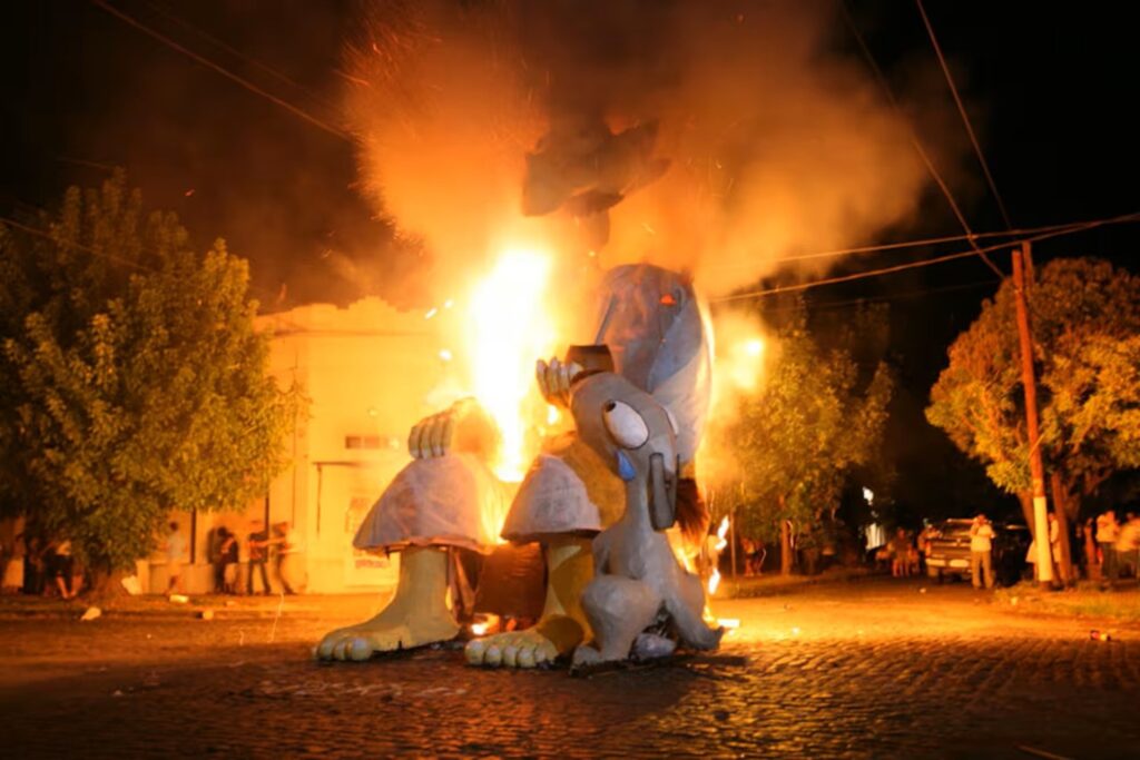 In the streets of Lima, as well as in towns and cities throughout Peru, the nights of December 31st are illuminated by the flames of the famous “Old Year’s effigies.” These figures, made from simple materials like cardboard, rags, and fabric, are nothing more than symbolic representations of the problems, worries, and difficult moments that people wish to leave behind. Some bear names that allude to social, economic, or personal situations, and their burning to the rhythm of the twelve chimes becomes a collective act of liberation.