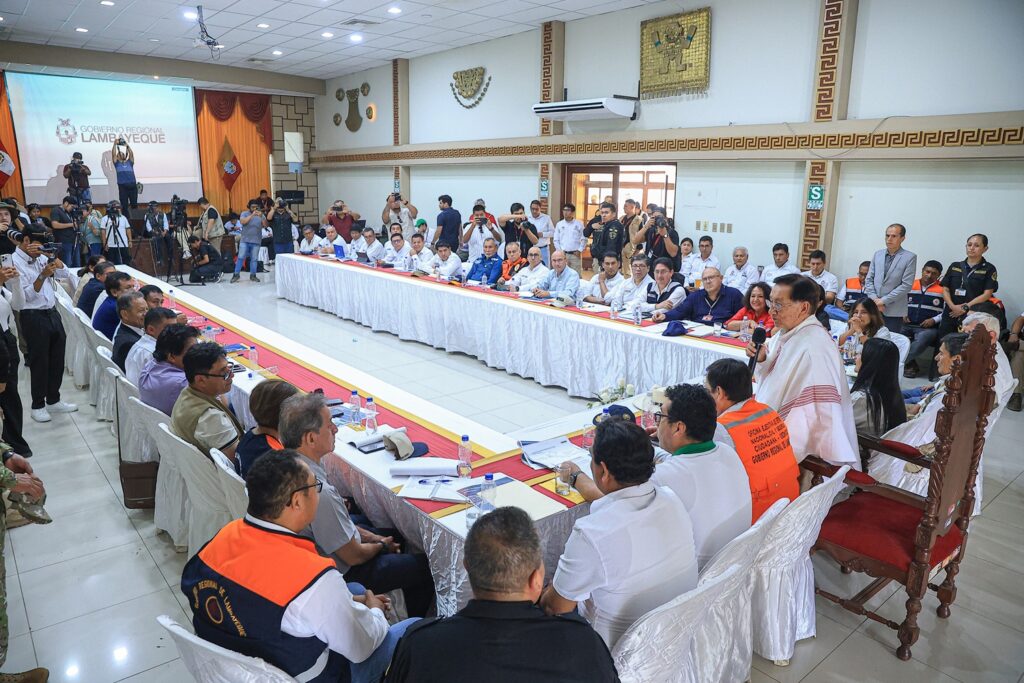 The President of the Republic, José María Balcázar, arrived this morning in the Lambayeque region to meet with regional and local authorities and address the demands arising from the emergency caused by heavy rains in northern Peru. During the meeting at the regional government headquarters, the Head of State emphasized that the priority is to act swiftly to mitigate the effects of the climate phenomenon.