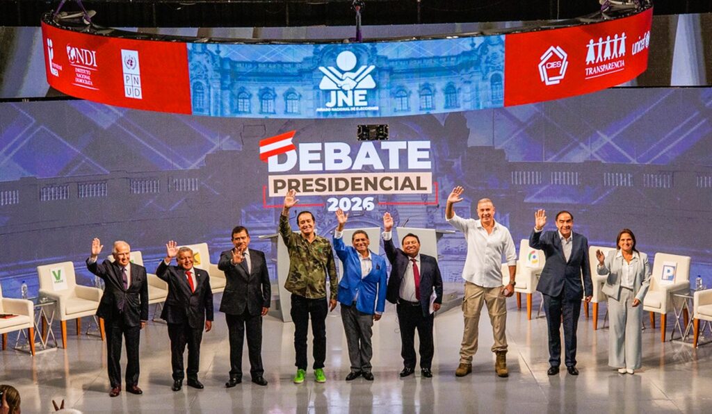 Agencia Peruana de Noticias PRENSAPERU.PE https://www.prensaperu.pe Twitter: @prensaperupe El 23 de marzo de 2026, en el Centro de Convenciones de Lima (distrito de San Borja), el Jurado Nacional de Elecciones (JNE) llevó a cabo la primera jornada del Gran Debate Presidencial, con la participación de 11 candidatos. Los temas centrales definidos por consenso fueron seguridad ciudadana y lucha contra la criminalidad, así como integridad pública y combate a la corrupción. El encuentro, moderado por Fernando Carvalho y Claudia Chiroque, tuvo una duración de dos horas y media, estructurado en cuatro bloques: interacciones entre candidatos, preguntas ciudadanas (sobre salud, economía y otros temas), nuevas interacciones y mensajes finales.
